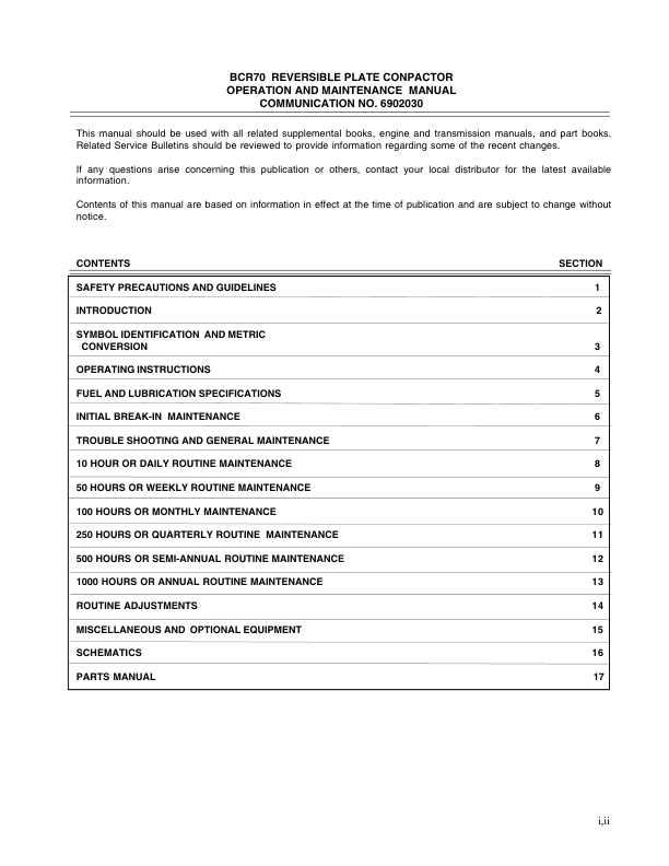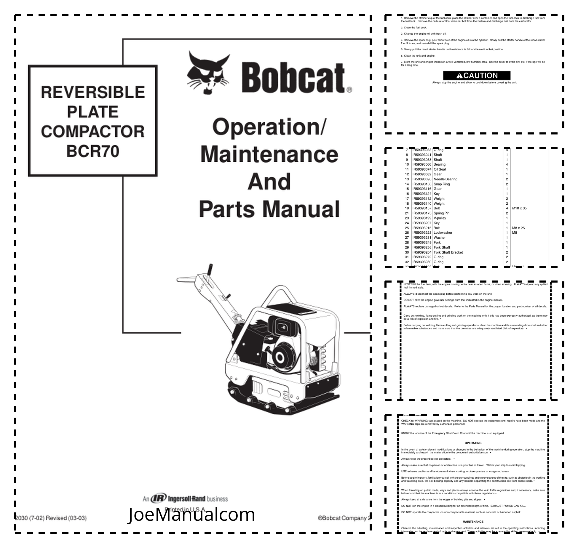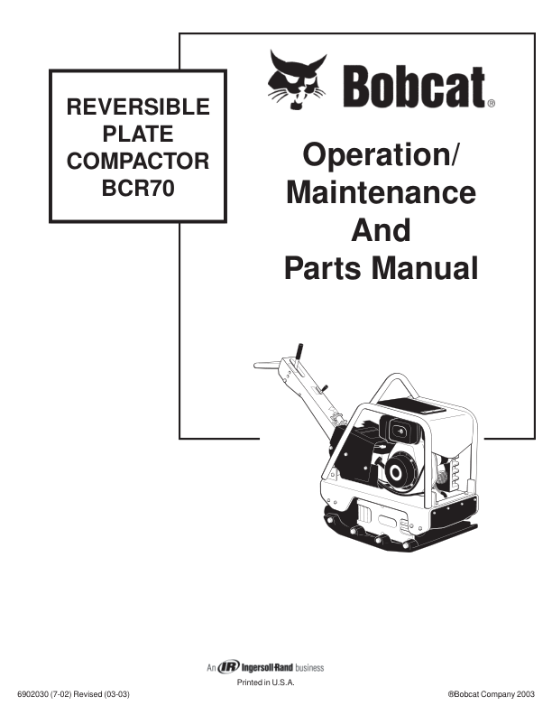 Bobcat BCR70 Plate Compactor Operation Maintenance Parts Manual This manual serves as an essential reference for operators and maintenance personnel of the Bobcat BCR70 Plate Compactor providing detailed guidance on proper operation maintenance and repair procedures to ensure optimal performance and longevity of the equipment The document includes comprehensive instructions for daily use routine inspections lubrication and maintenance tasks as well as step by step troubleshooting tips to address common issues efficiently It also features clear diagrams and part listings to aid in identifying and replacing components with precision Designed to support both routine care and more complex repairs the manual emphasizes safety protocols and best practices to maintain equipment reliability and minimize downtime for users and technicians alike