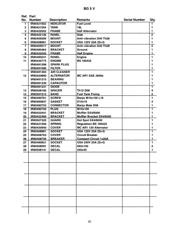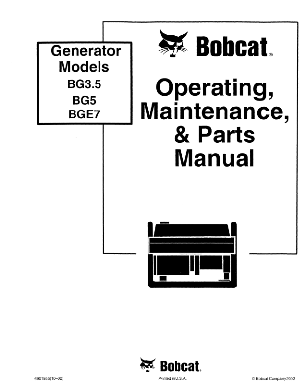 Bobcat BG3.5 BG5 BG7 Operation and Maintenance Manual Parts Catalog