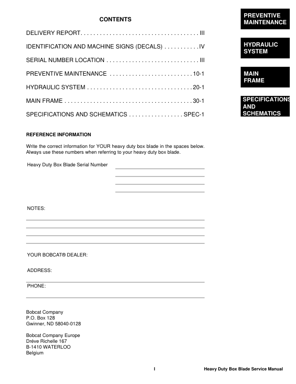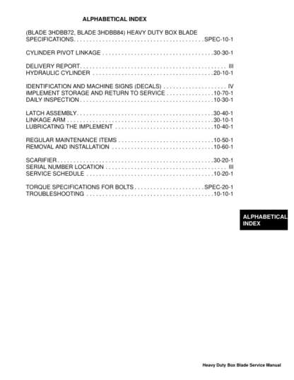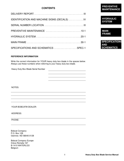Bobcat Blade 3HDBB72 Blade 3HDBB84 Box Blade Service Manual