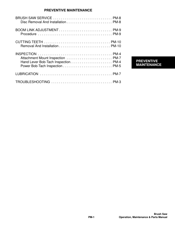 Bobcat Brush Saw Operation and Maintenance is your comprehensive guide to safely and effectively using and maintaining your Bobcat brush saw attachment. This manual provides detailed instructions on operation, preventative maintenance, troubleshooting, and repair procedures, ensuring optimal performance and longevity of your equipment. Bobcat Brush Saw Operation and Maintenance provides essential knowledge for operators and maintenance personnel. This resource covers safe operation practices, routine maintenance schedules, diagnostic procedures, and repair guidelines, empowering users to maximize the brush saw’s performance and extend its service life.