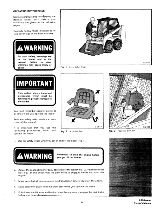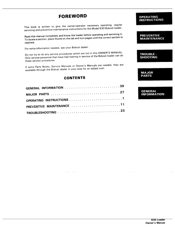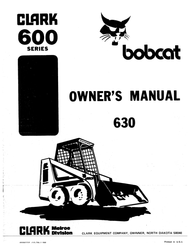 Bobcat Clark 630 Skidsteer Loader Operation and Maintenance Manual