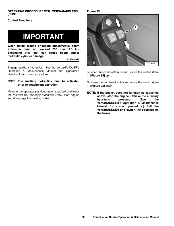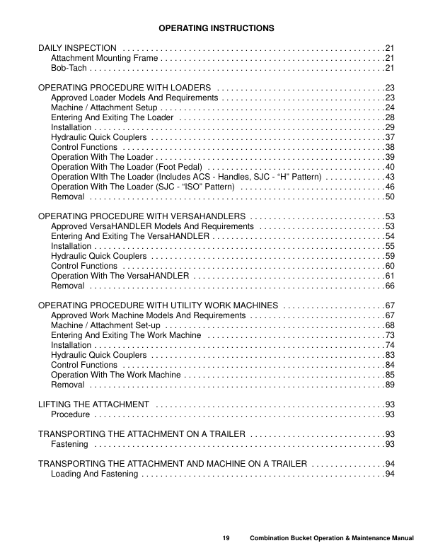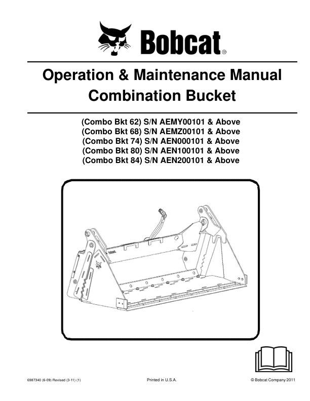 Bobcat Combo Bkt 62 68 74 80 84 Combination Bucket Operation and Maintenance Manual AEMY AEMZ AEN0 AEN1 AEN2 This manual provides essential guidance for the safe and efficient operation and maintenance of Bobcat Combination Buckets models 62 68 74 80 84 including variants AEMY AEMZ AEN0 AEN1 AEN2 It covers detailed instructions on daily use procedures routine maintenance tasks troubleshooting common issues and proper storage techniques to ensure optimal performance and longevity of the equipment The document is designed to assist operators and maintenance personnel in understanding the features functionality and best practices for maintaining these attachments It includes diagrams specifications and safety guidelines to support effective handling and upkeep of the bucket systems ensuring compliance with manufacturer recommendations and promoting safe working conditions
