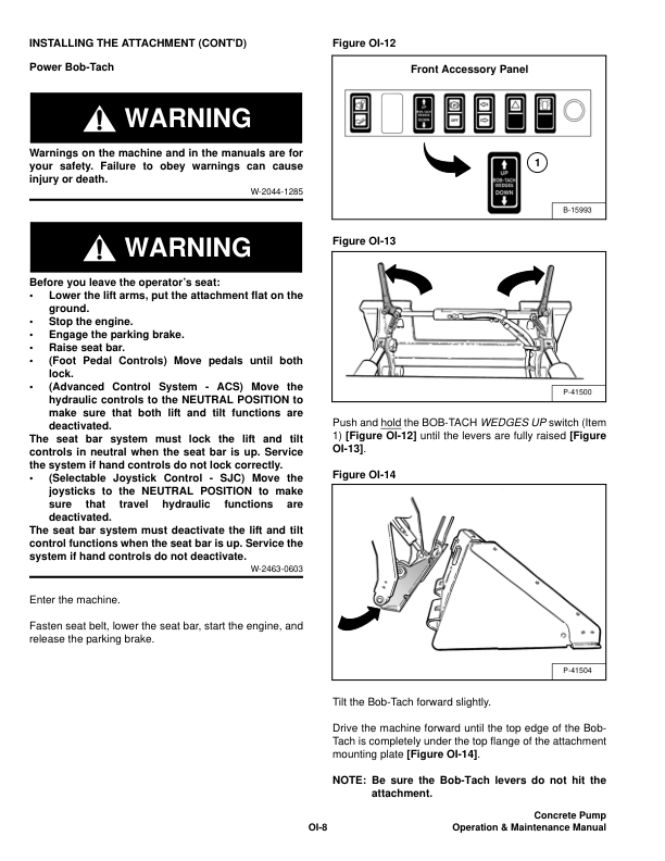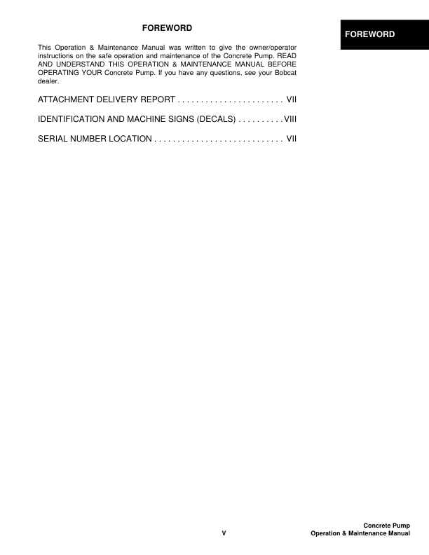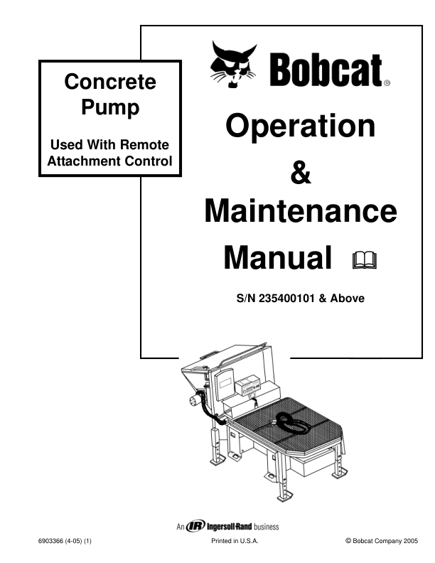Bobcat Concrete Pump Attachment Operators Manual 235400101