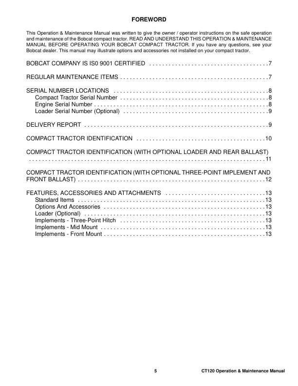 Bobcat CT120 Compact Tractor Operation and Maintenance Manual A59A