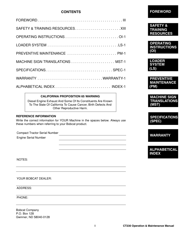 Bobcat CT230 Compact Tractor Operation and Maintenance Manual A59C