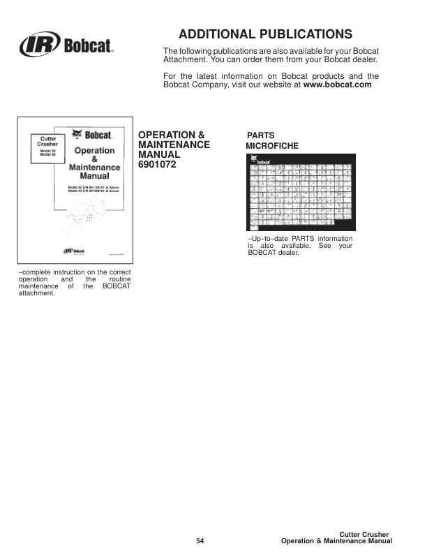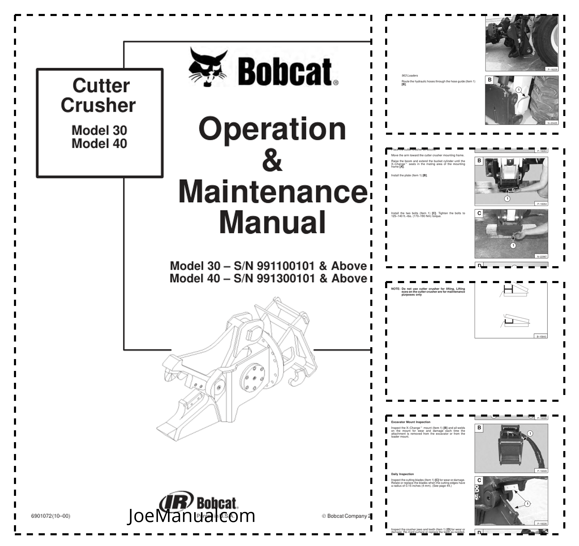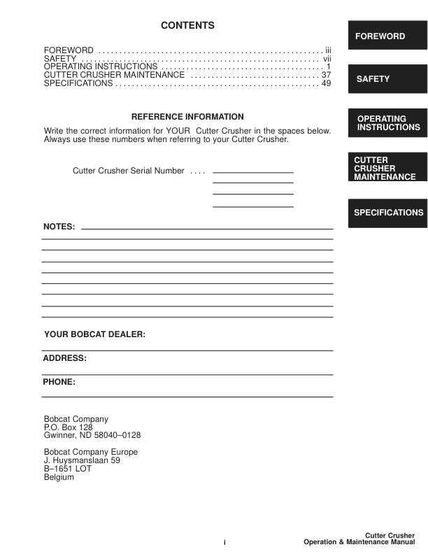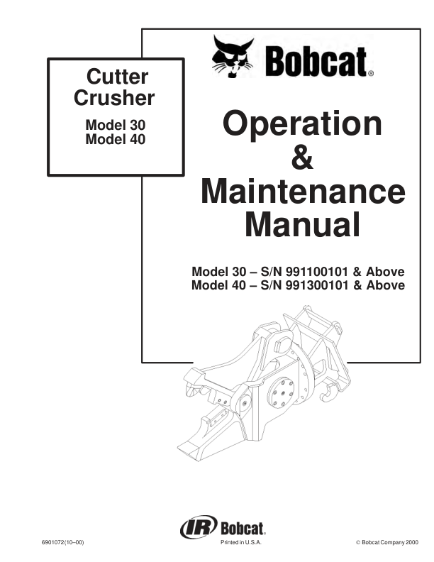 Bobcat Cutter Crusher Attachment Operators Manual 9911 9913
