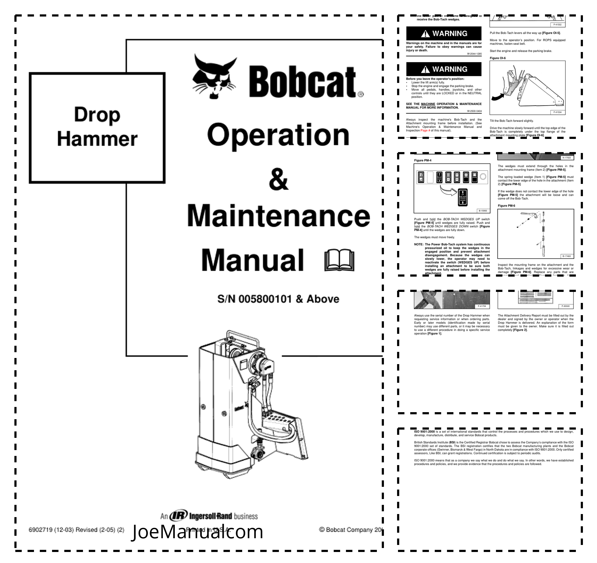 Bobcat Drop Hammer Attachment Operators Manual 005800101