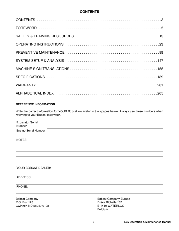Bobcat E35 Compact Excavator Operators Manual A93K11001