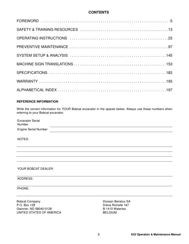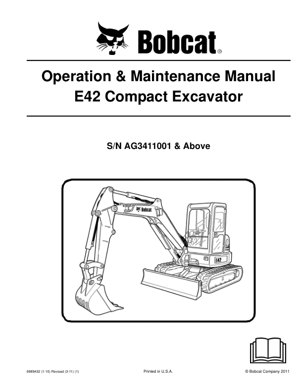 Bobcat E42 Compact Excavator Operators Manual AG3411001