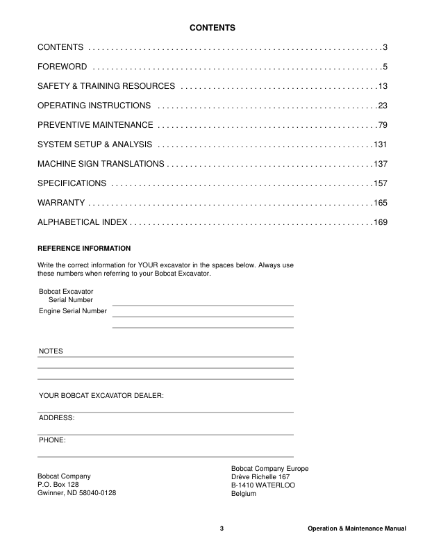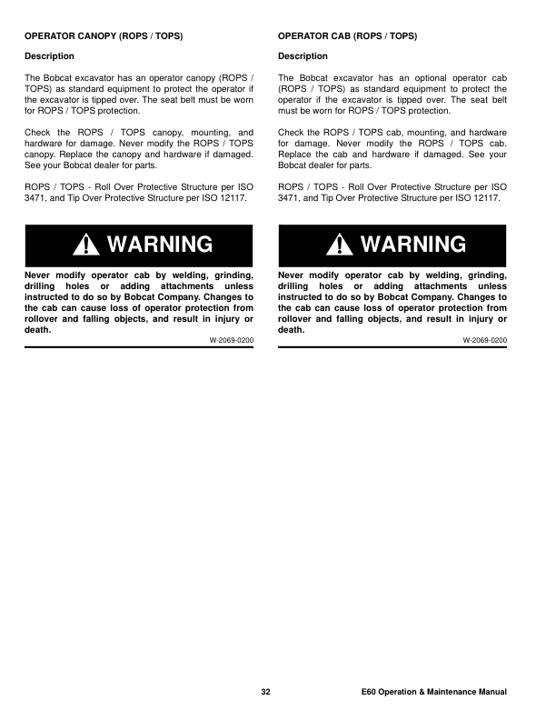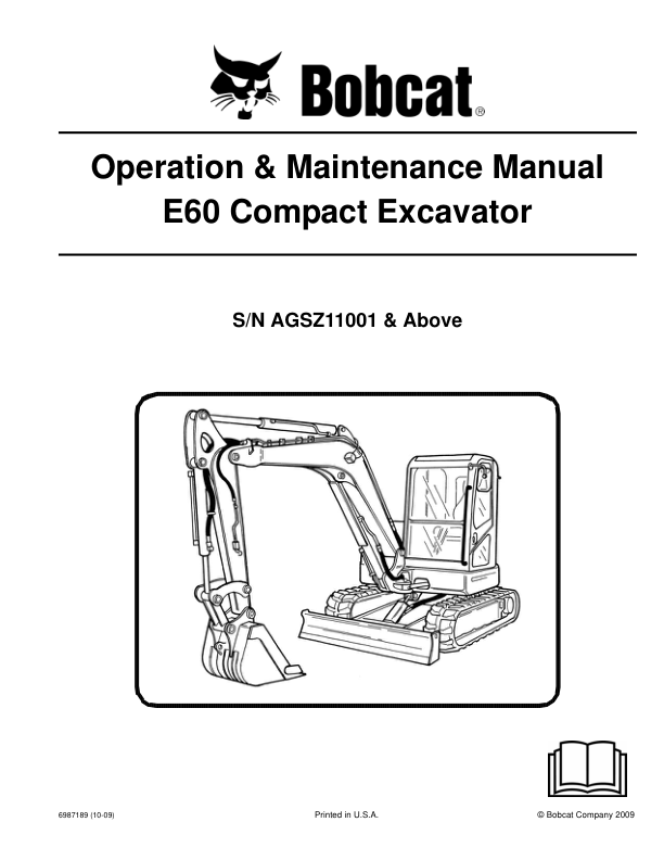 Bobcat E60 Compact Excavator Operation and Maintenance Manual AGSZ11001