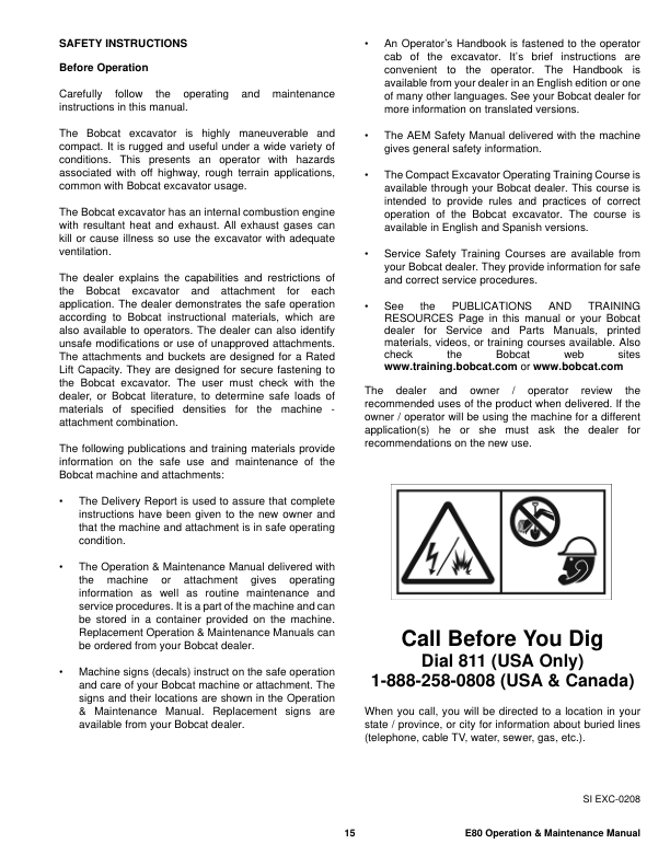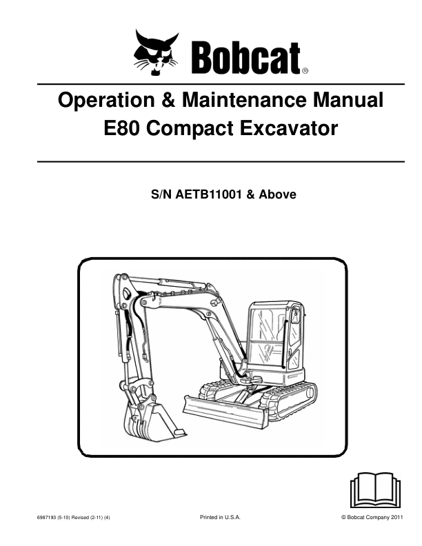 Bobcat E80 Compact Excavator Operation and Maintenance Manual AETB11001