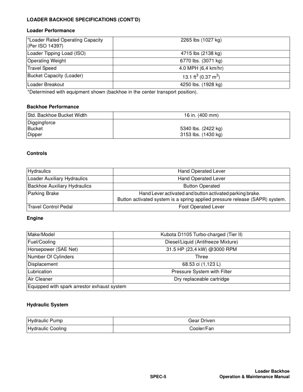 Bobcat EF2 Loader Backhoe Operation and Maintenance Manual