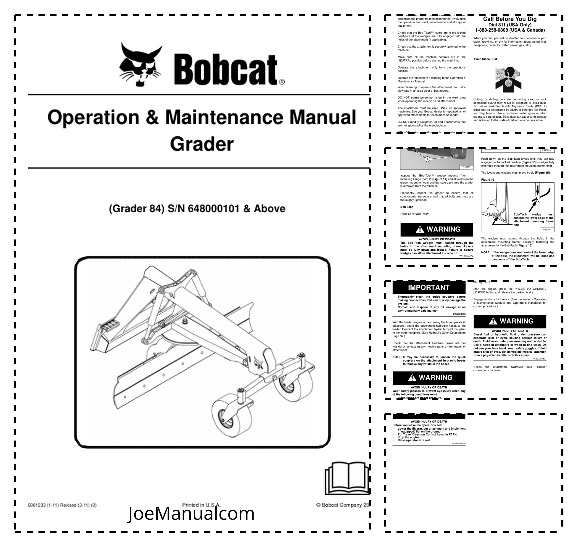 Bobcat Grader 84 Grader Operation and Maintenance Manual 6480 The Bobcat Grader 84 Grader Operation and Maintenance Manual 6480 is a comprehensive guide designed to provide operators and maintenance personnel with detailed instructions for the safe and efficient use of the Bobcat Grader 84 equipment. This manual covers essential topics including equipment setup, operational procedures, routine maintenance tasks, troubleshooting common issues, and safety protocols to ensure longevity and performance. It serves as a critical resource for maximizing productivity while adhering to manufacturer guidelines, offering step-by-step guidance for both daily operations and periodic servicing. The document is structured to support users in maintaining optimal functionality of the machine, enhancing reliability, and minimizing downtime through proper care and maintenance practices.