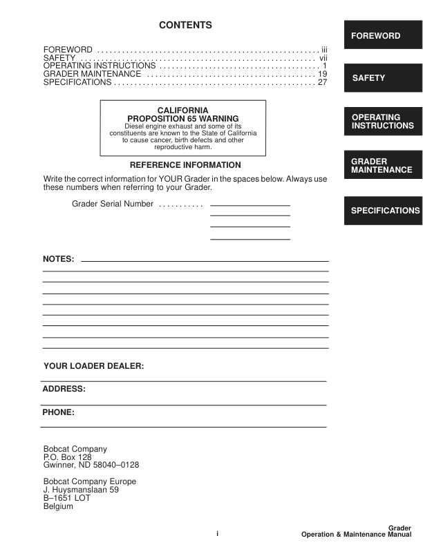 Bobcat Grader 84 Grader Operation and Maintenance Manual 8027 2315 The Bobcat Grader 84 Grader Operation and Maintenance Manual 8027 2315 is a comprehensive resource designed to provide essential guidance for the safe and efficient operation of the Bobcat Grader 84. This manual includes detailed instructions on daily use, routine maintenance tasks, system checks, and troubleshooting procedures to ensure optimal performance and longevity of the equipment. It covers all critical aspects of machine operation, from startup and shutdown protocols to hydraulic system maintenance and blade adjustments. The document also emphasizes safety measures and compliance with industry standards, making it an invaluable tool for operators and maintenance personnel. Additionally, it contains technical specifications, component identification, and recommended service intervals to support informed decision-making and proper upkeep of the grader. By following the procedures outlined in this manual, users can maximize productivity, minimize downtime, and maintain the reliability of their Bobcat Grader 84.