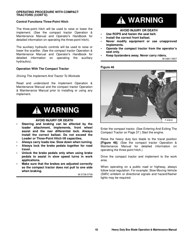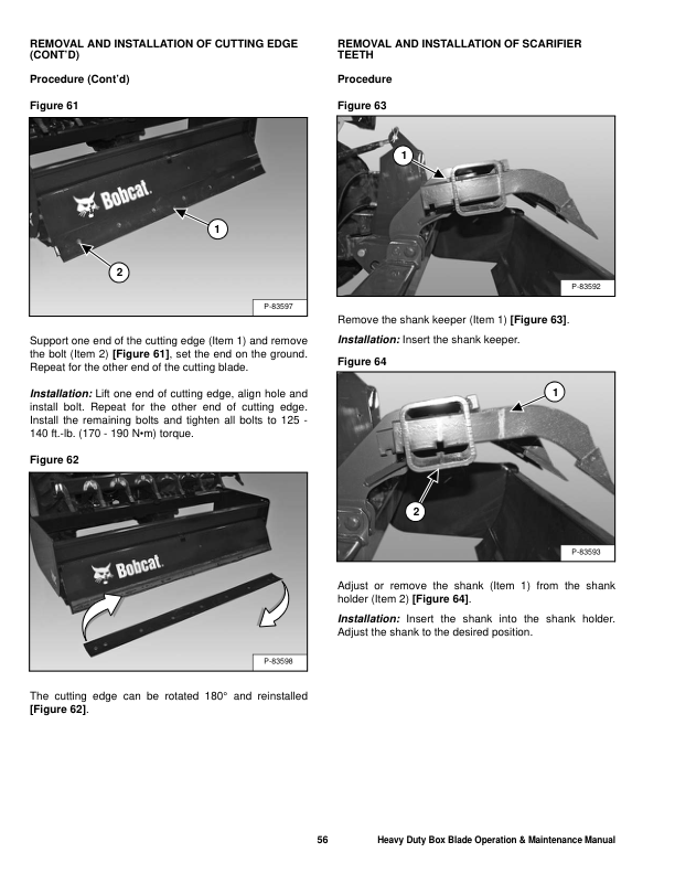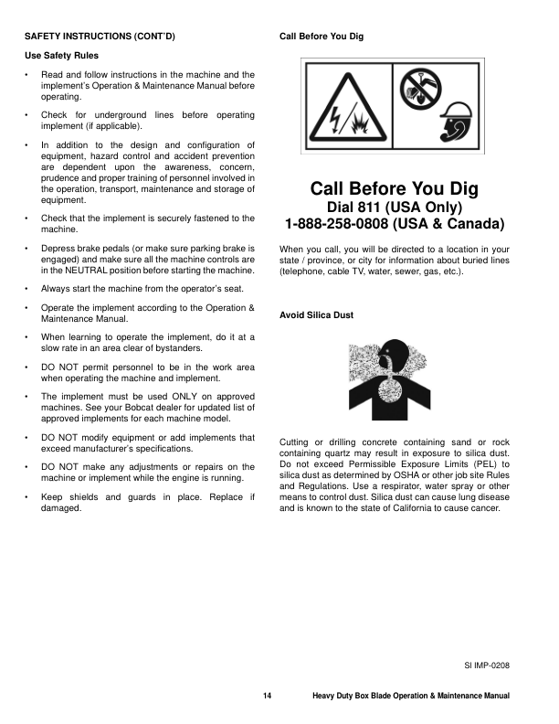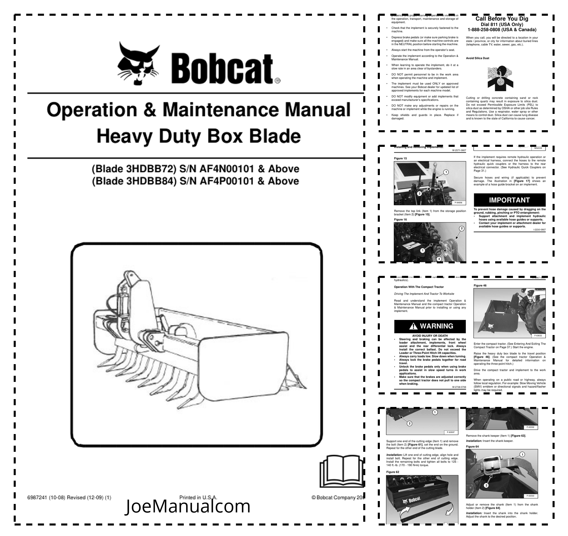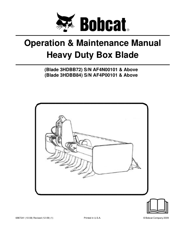 Bobcat Heavy Duty Box Blade Attachment Operation and Maintenance Manual 3HDBB72 3HDBB84
