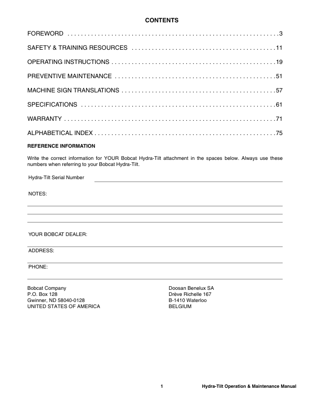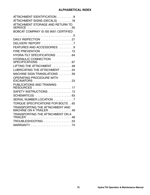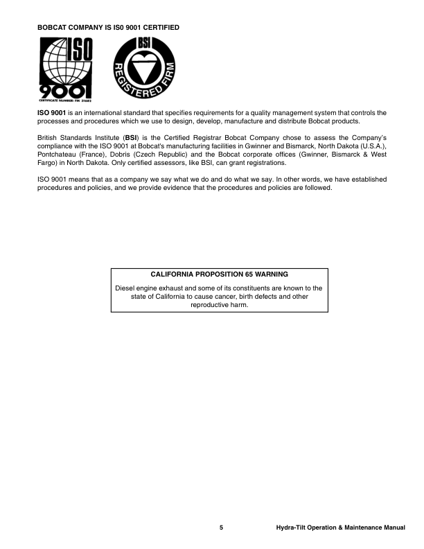 Bobcat Hydra Tilt Attachment Operation and Maintenance Manual