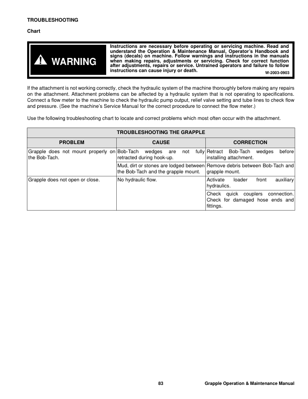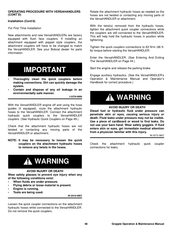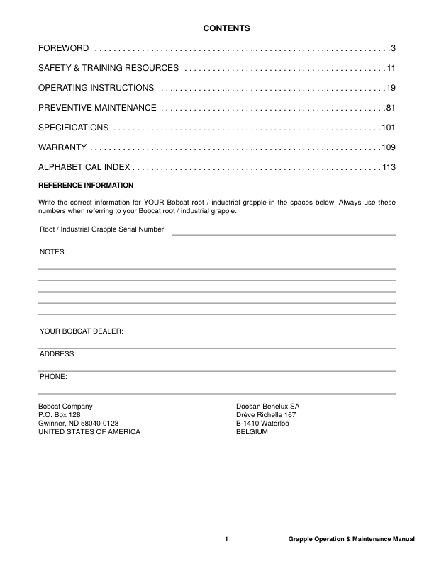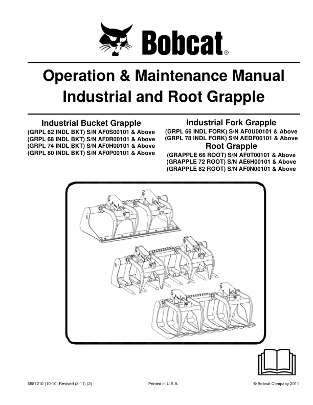 Bobcat Industrial and Root Grapple Attachment Operation and Maintenance Manual