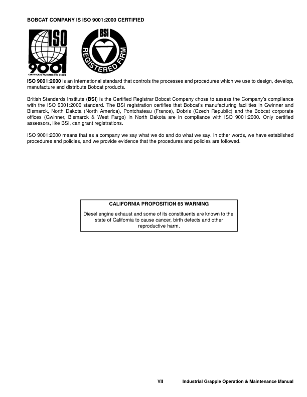 Bobcat Industrial Grapple Attachment Operation and Maintenance Manual