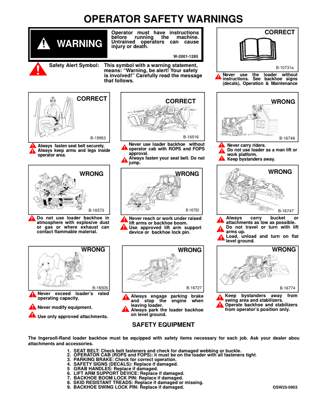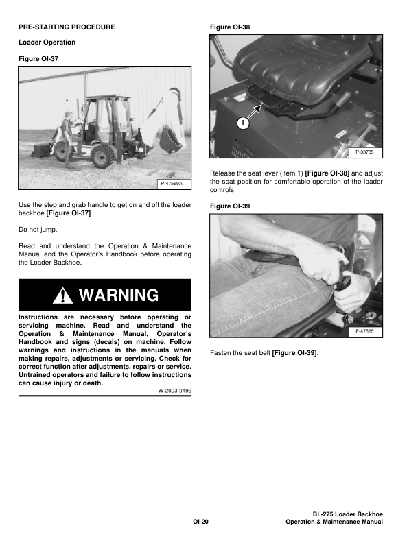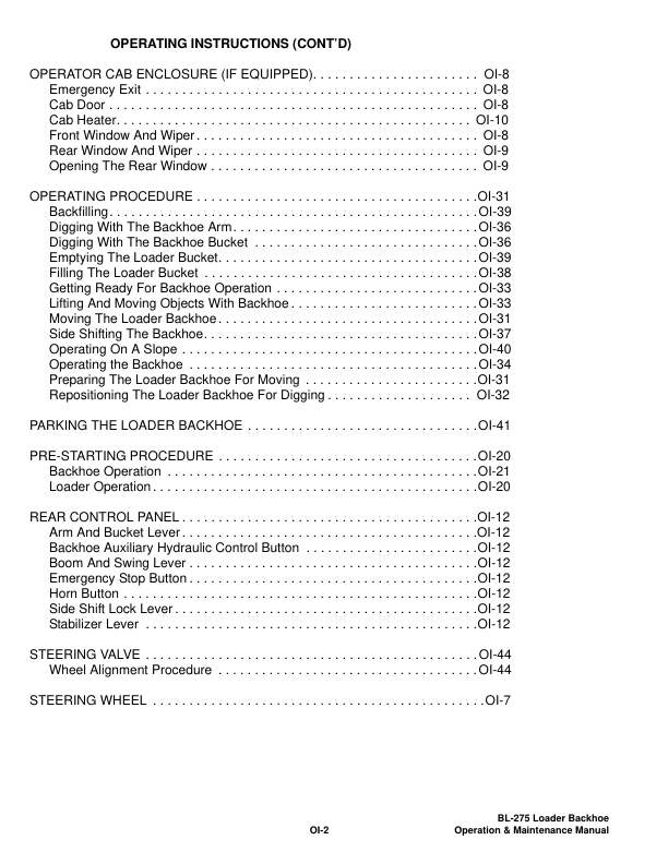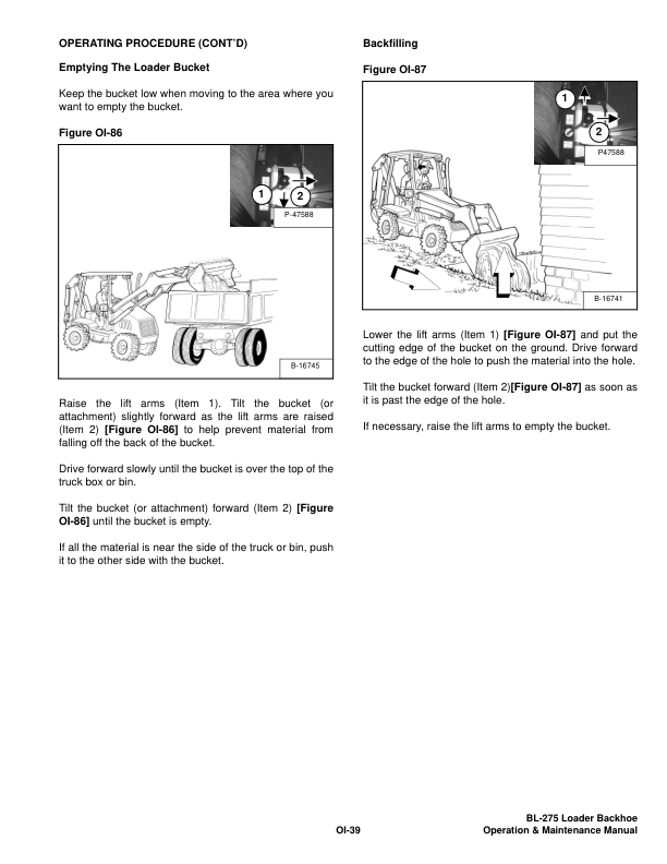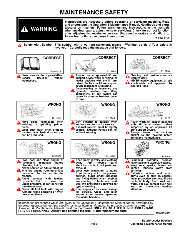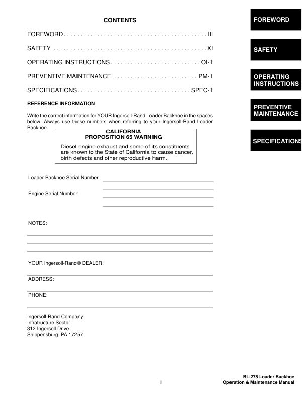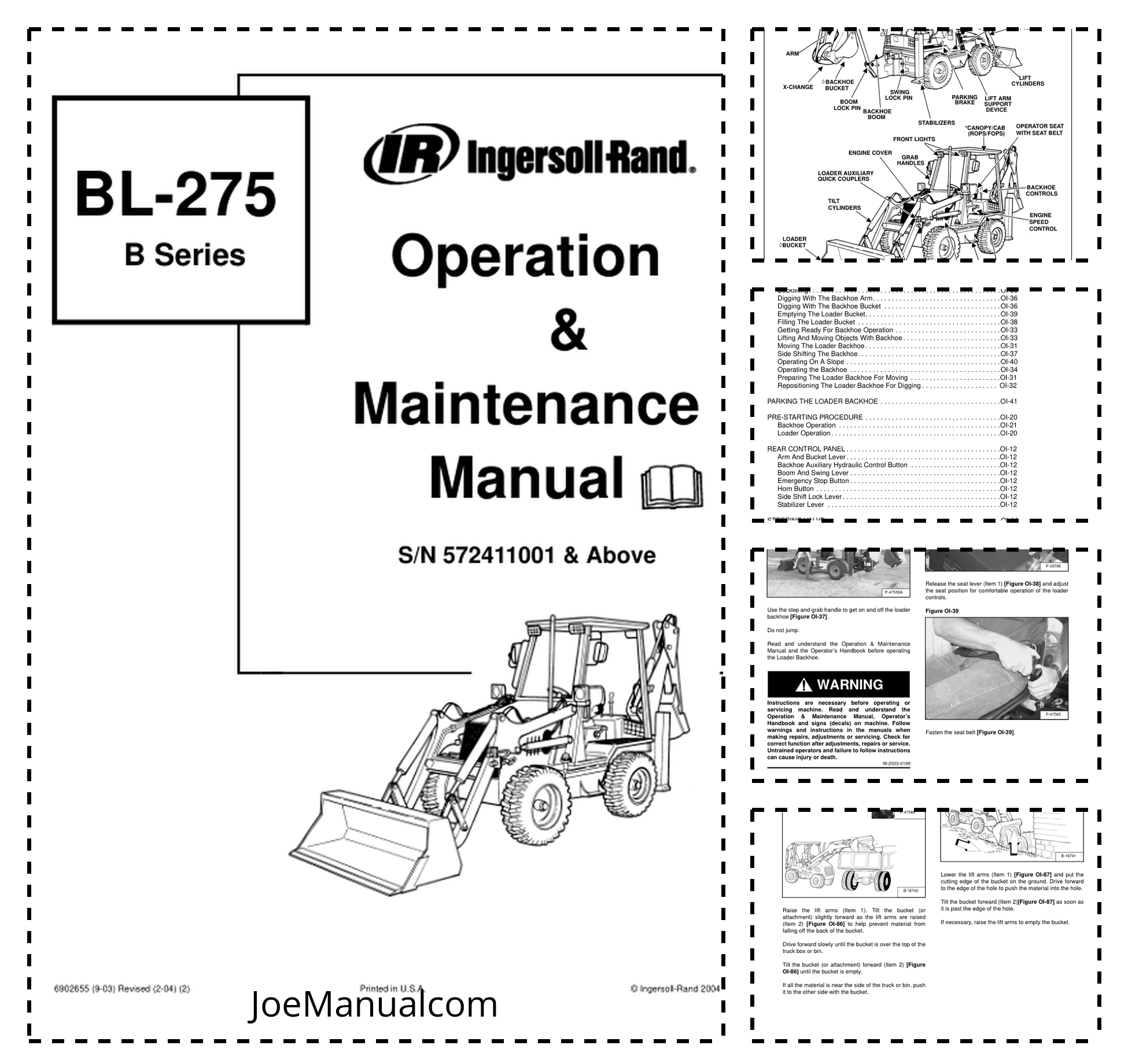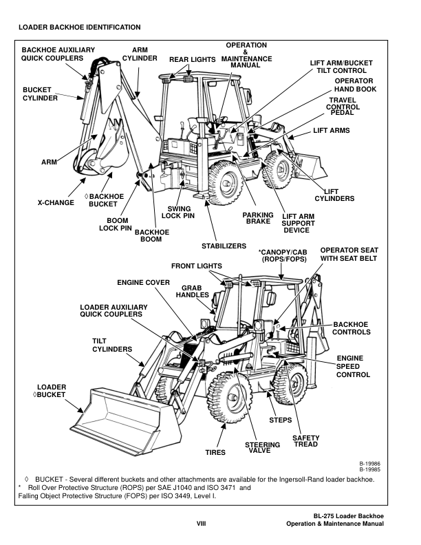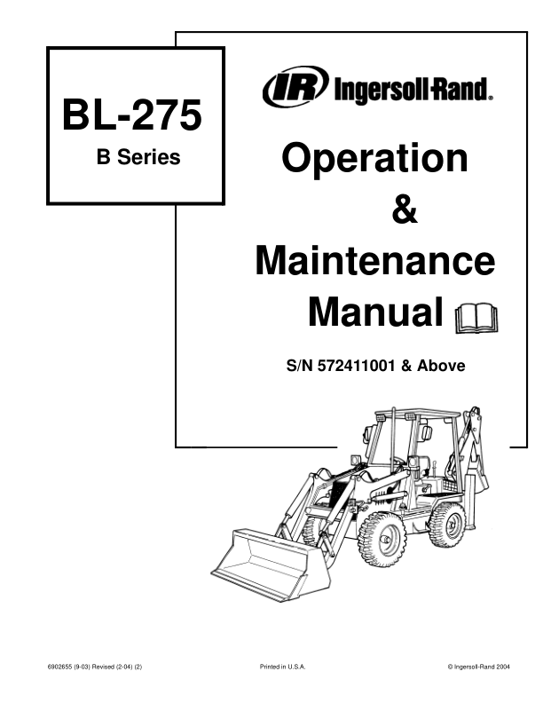 Bobcat Ingersoll-Rand BL-275 Backhoe Loader Operation and Maintenance Manual 572411001