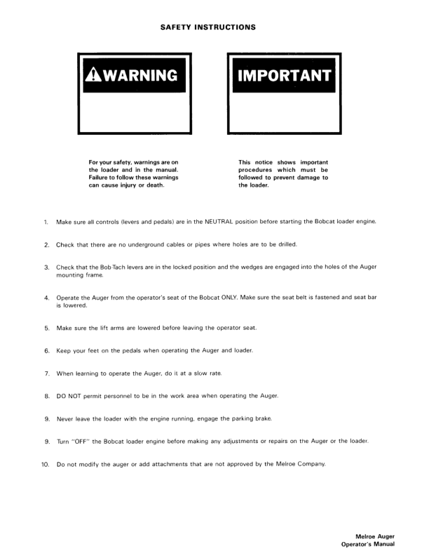 Bobcat Lowe Auger Hex Drive Operators Manual. This manual provides essential information for the safe and effective operation and maintenance of your Bobcat Lowe Auger with a hex drive system. It includes safety guidelines, operating procedures, maintenance schedules, and troubleshooting tips to help you maximize the performance and lifespan of your equipment. Bobcat Lowe Auger Hex Drive Operators Manual. This comprehensive guide offers operators crucial information on the safe and efficient use of their Bobcat Lowe Auger featuring a hex drive. It covers operation best practices, routine maintenance, and helpful troubleshooting advice.