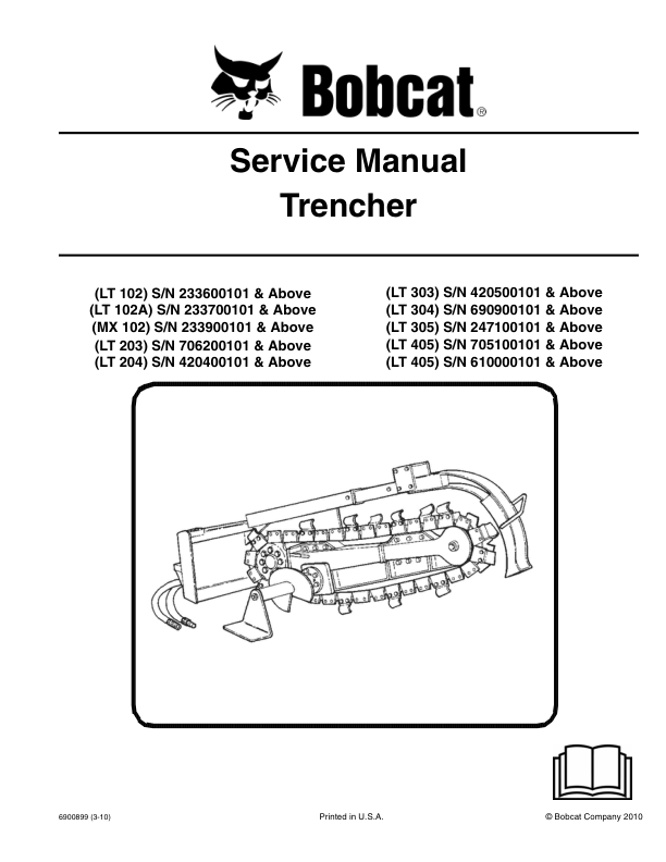 Bobcat LT102 LT102A MX102 LT203 LT204 LT303 LT304 LT305 LT405 Trencher Service Manual