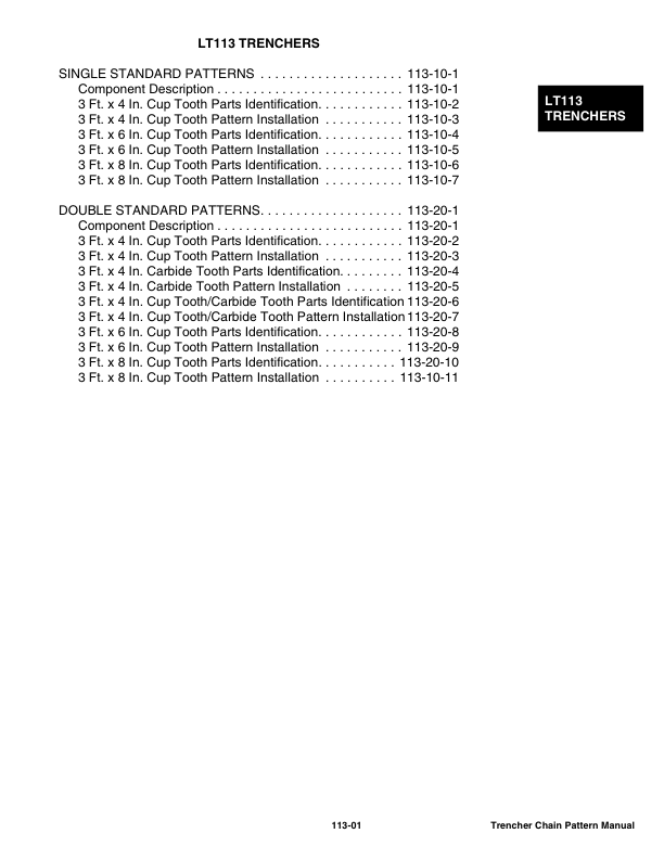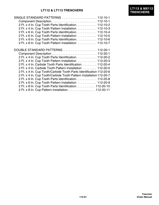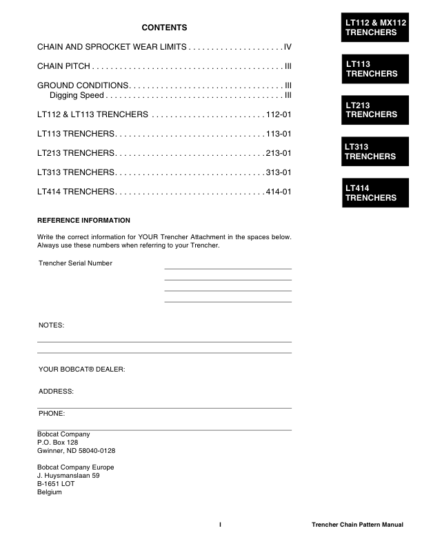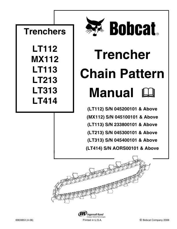 Bobcat LT112 MX112 LT113 LT213 LT313 LT414 Trencher Chain Pattern Manual