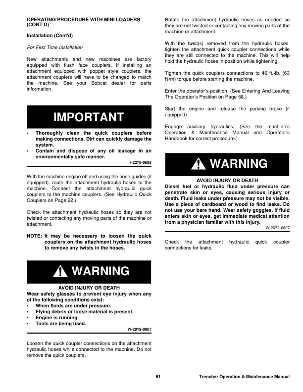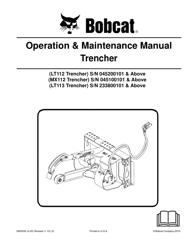 Bobcat LT112 MX112 LT113 Trencher Operation and Maintenance Manual