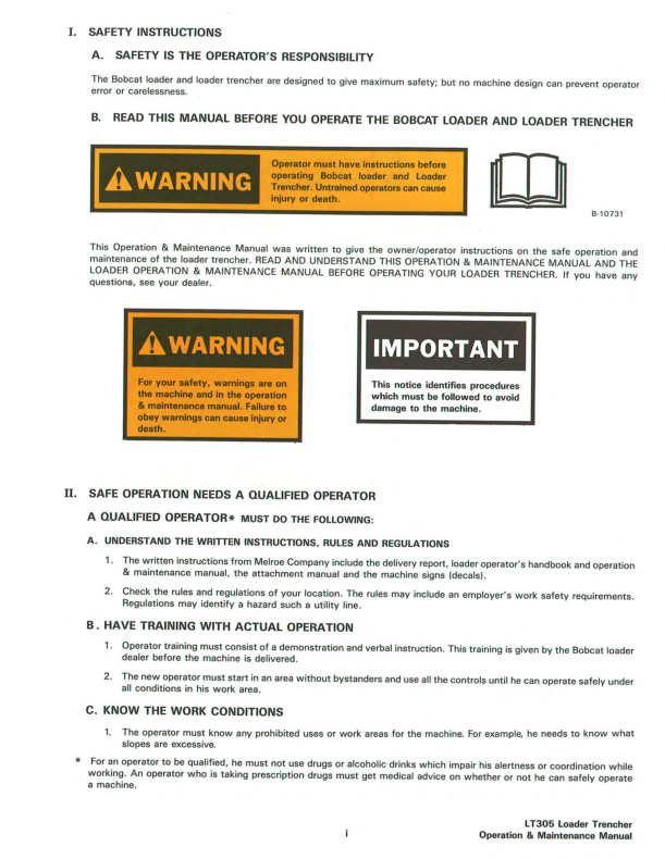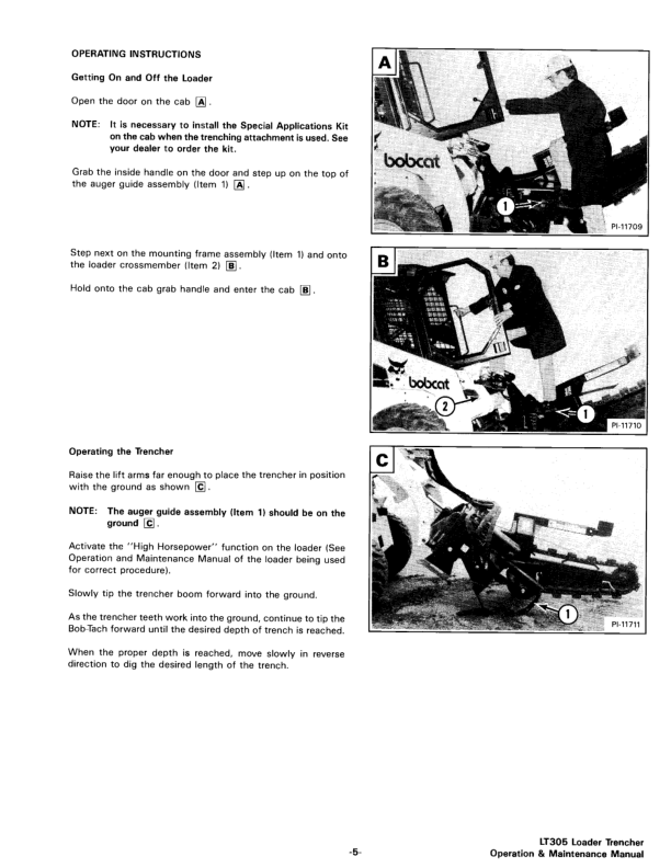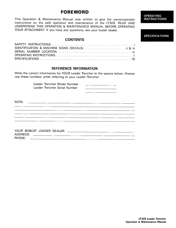 Bobcat LT305 Loader Trencher Operation and Maintenance Manual