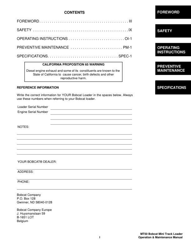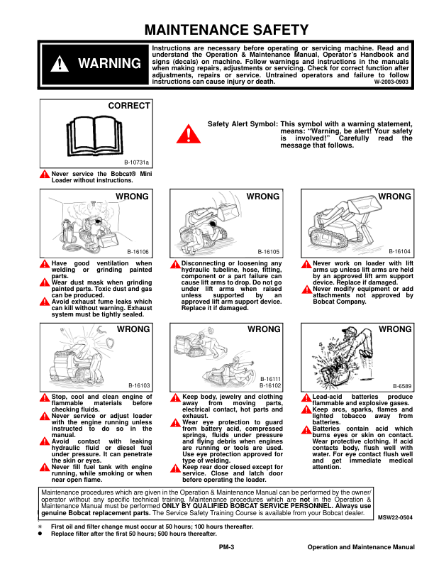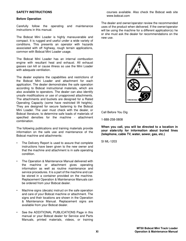 Bobcat MT50 Mini Track Loader Operation and Maintenance Manual 5206 5224