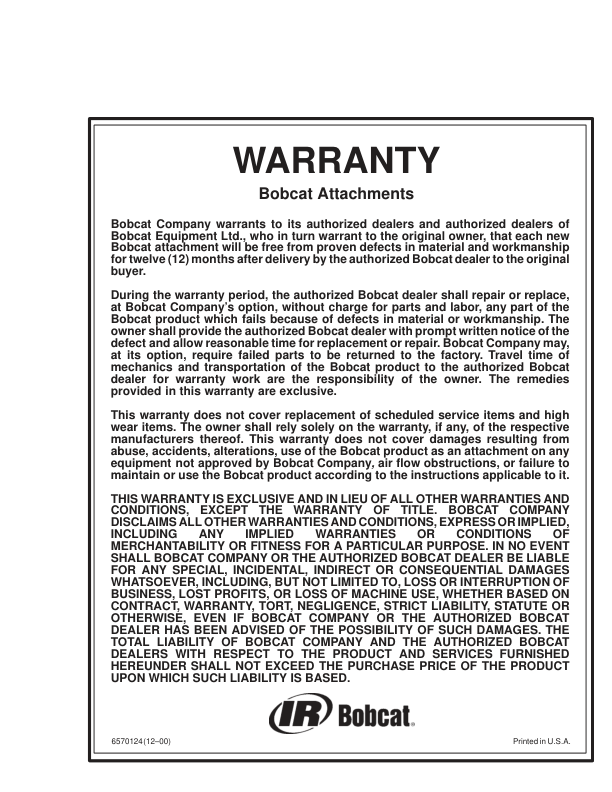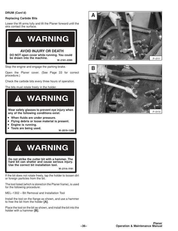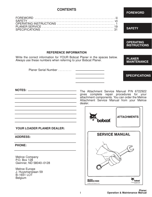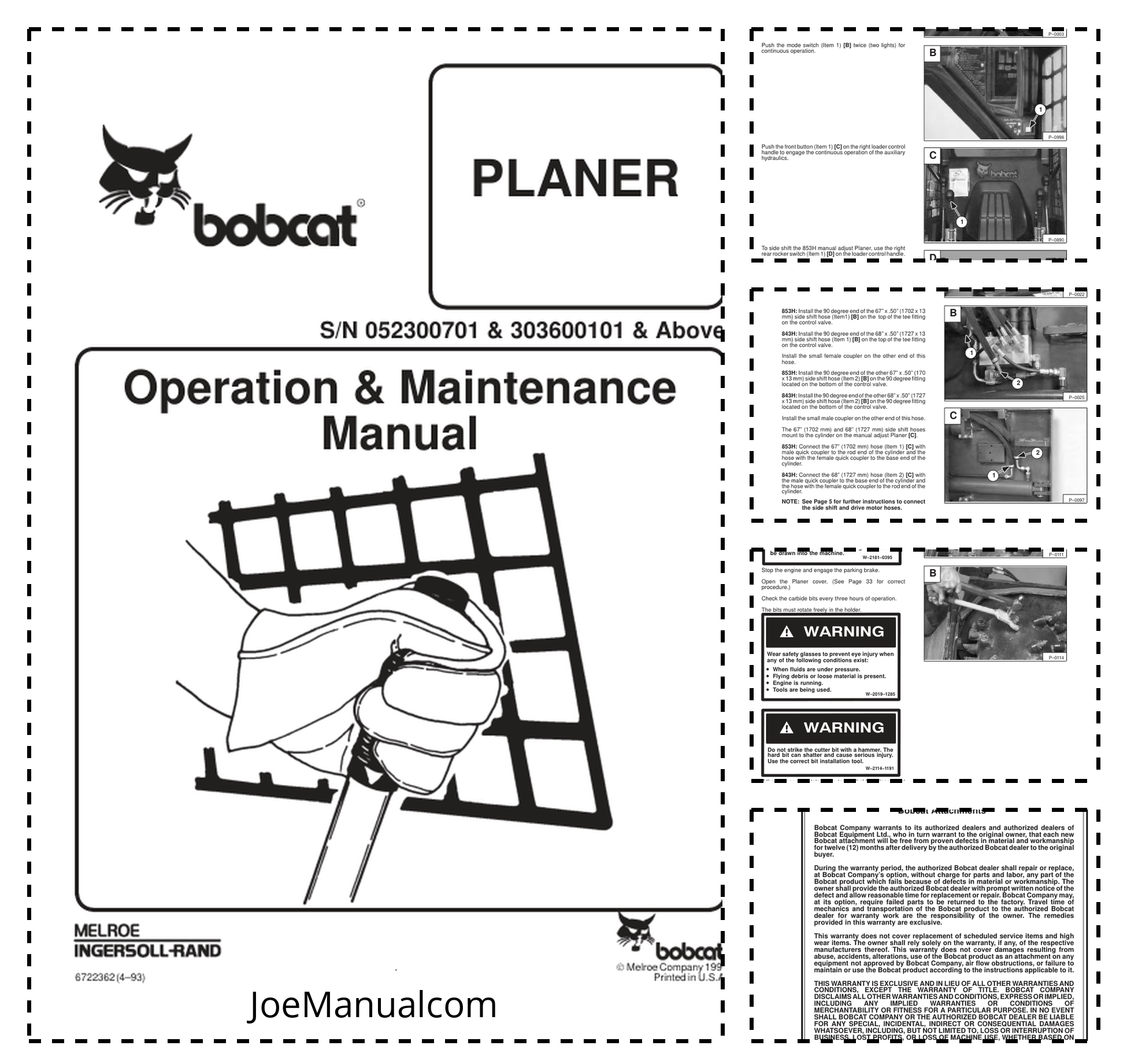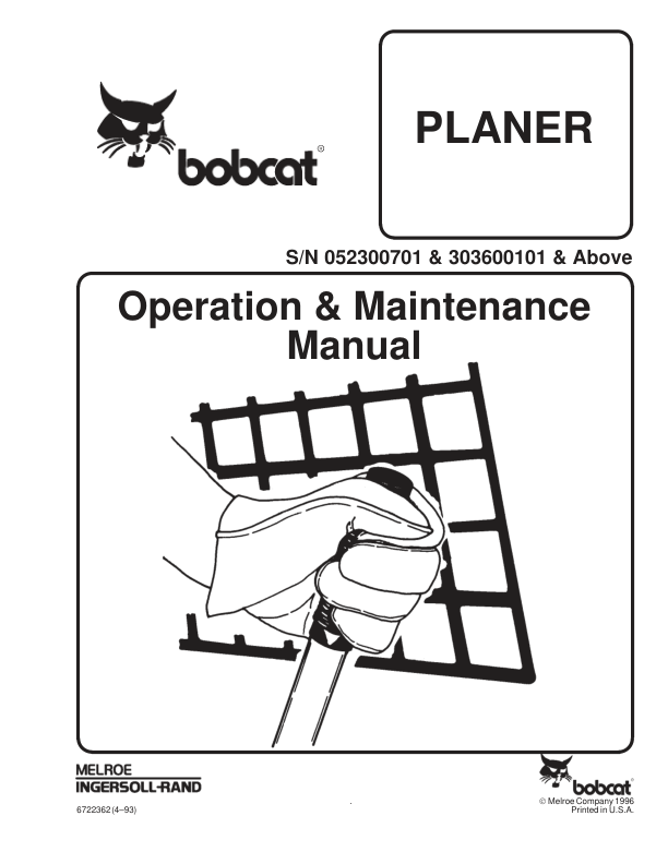 Bobcat Planer Operation and Maintenance Manual 0523 3036