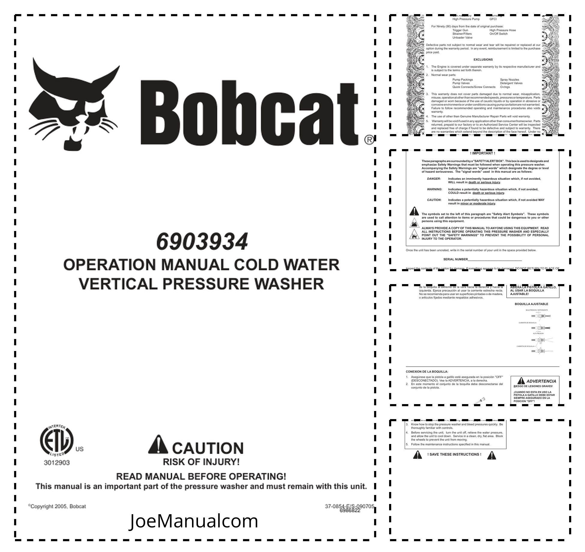 Bobcat Pressure Washer Operation and Maintenance Manual 6903934 is your comprehensive guide to safely and effectively operating and maintaining your Bobcat pressure washer. This manual provides essential information for maximizing the lifespan and performance of your equipment. Bobcat Pressure Washer Operation and Maintenance Manual 6903934 offers detailed instructions and guidelines for the proper operation, regular maintenance, and troubleshooting of your Bobcat pressure washer, ensuring optimal performance and longevity.