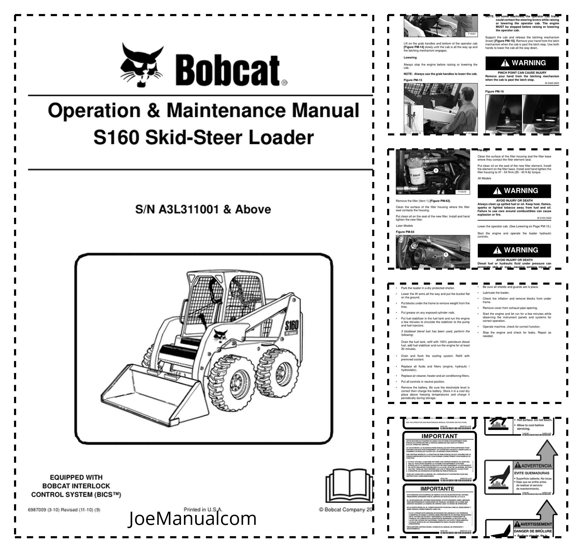 Bobcat S160 Skid Steer Loader Operation and Maintenance Manual A3L3