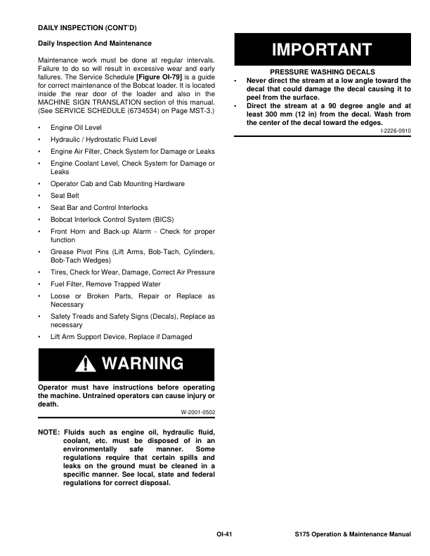 Bobcat S175 Skid Steer Loader Operation and Maintenance Manual A3L5