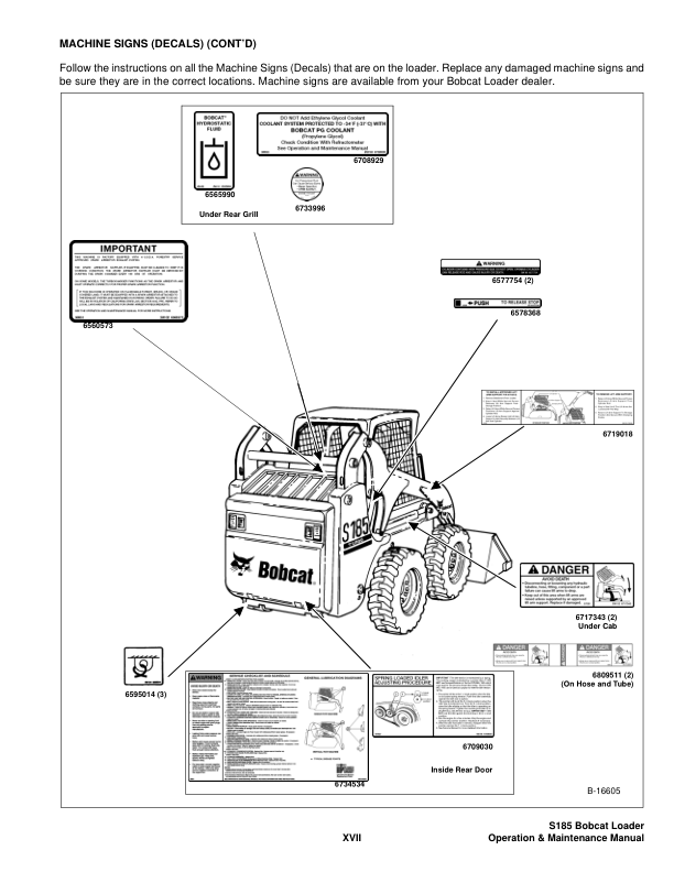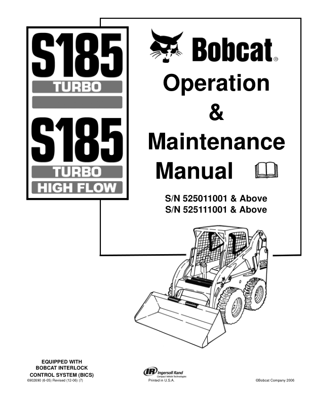 Bobcat S185 Skid Steer Loader Operation and Maintenance Manual 5250 5251