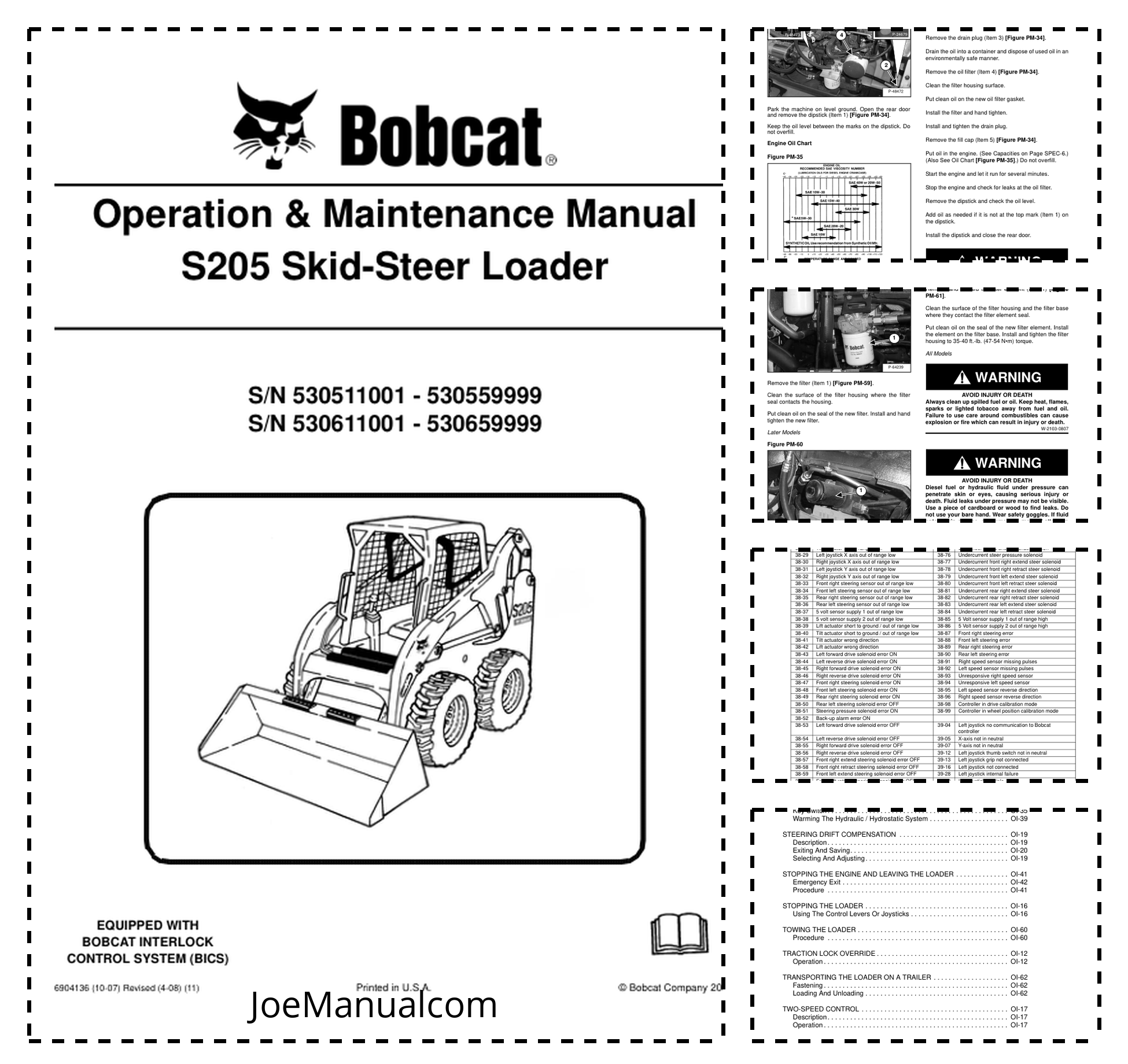 Bobcat S205 Skid Steer Loader Operation and Maintenance Manual 5284 5285 2008
