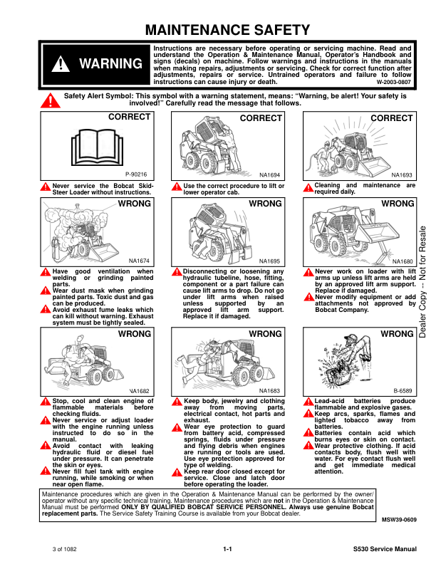 Bobcat S530 Skid Steer Loader Service Manual A7TW AZN7 ATZD AZN6