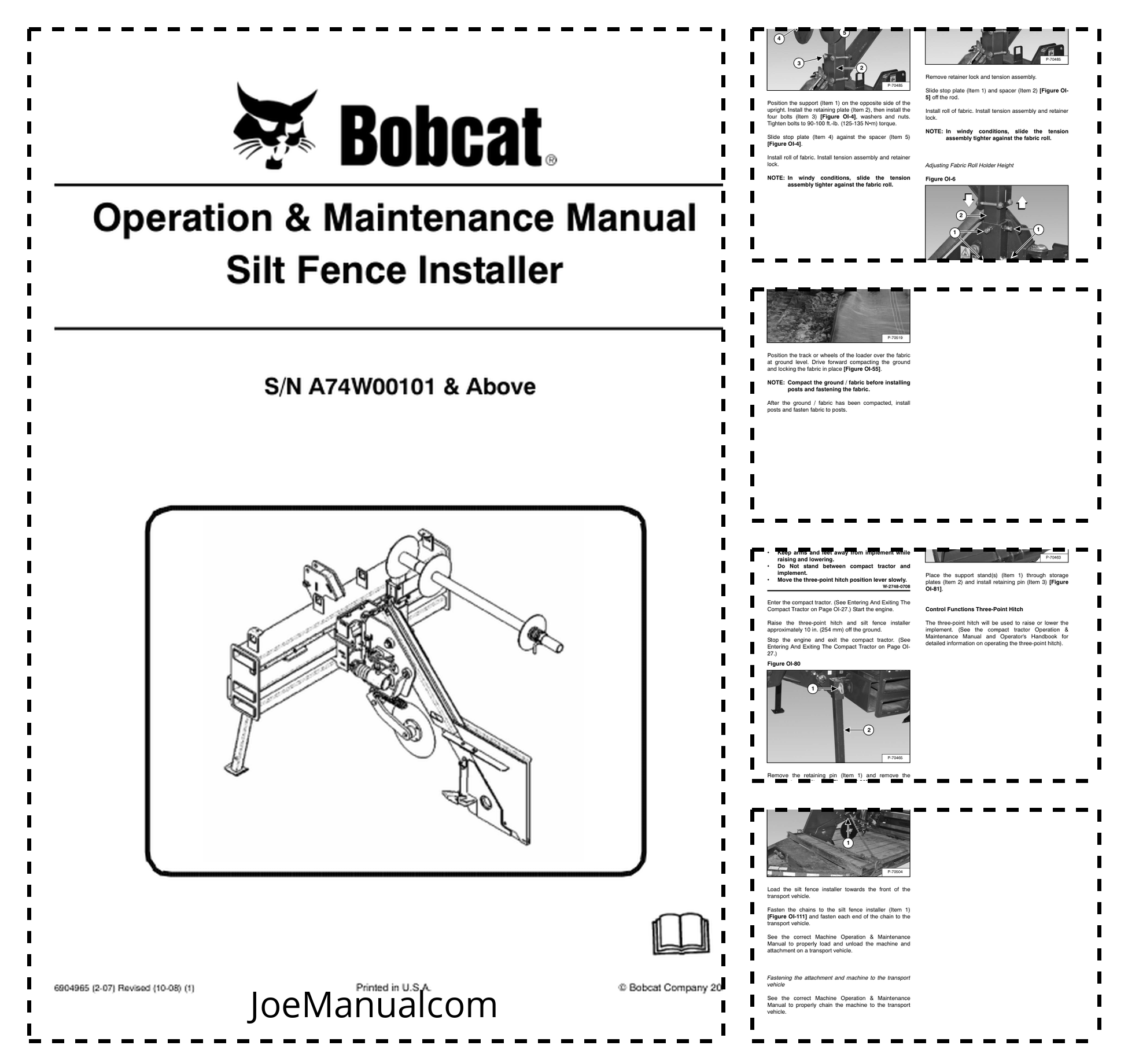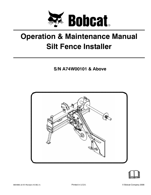 Bobcat Silt Fence Installer Attachment Operation and Maintenance Manual A74W A74W