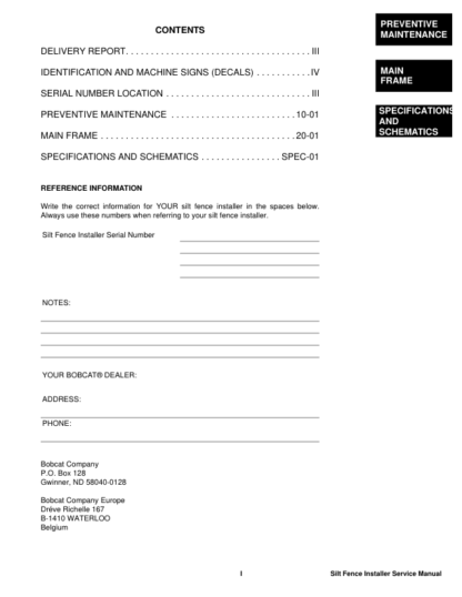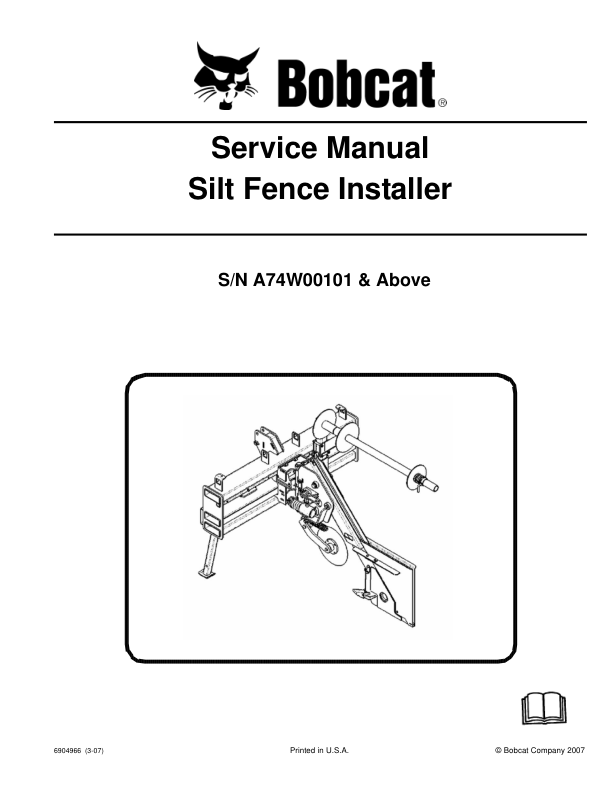 Bobcat Silt Fence Installer Service Manual A74W00101