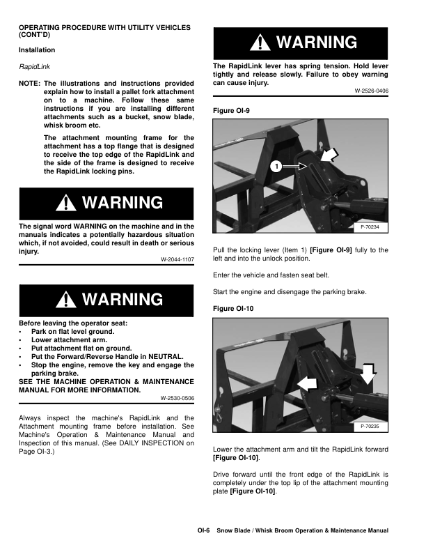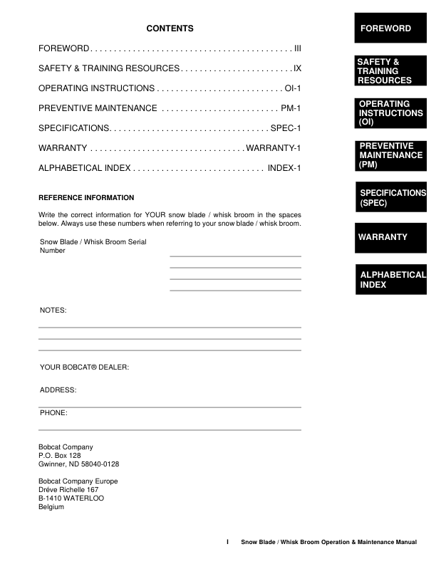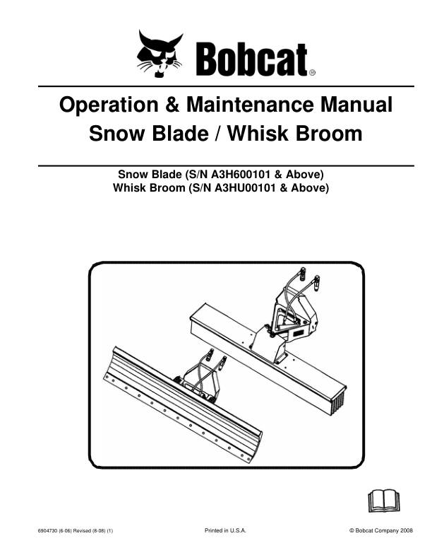 Bobcat Snow Blade Whisk Broom Attachment Operation and Maintenance Manual A3H6 A3HU rev2