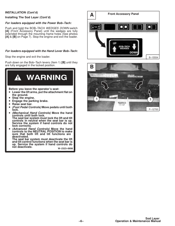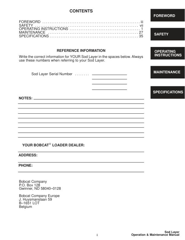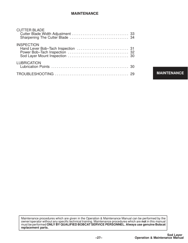 Bobcat Sod Layer Attachment Operation and Maintenance Manual 2318 7499