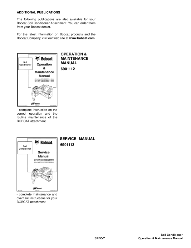 Bobcat Soil Conditioner Attachment Operation and Maintenance Manual 2320 6513