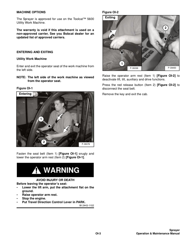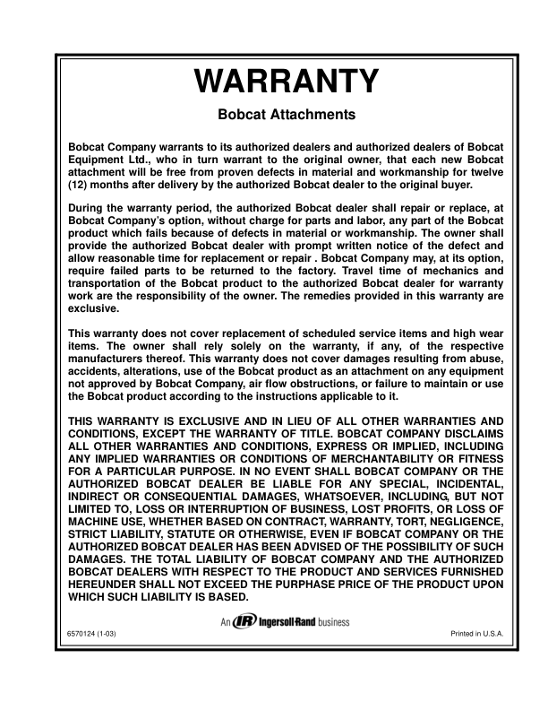 Bobcat Sprayer Attachment Operation and Maintenance Manual 0054 0054
