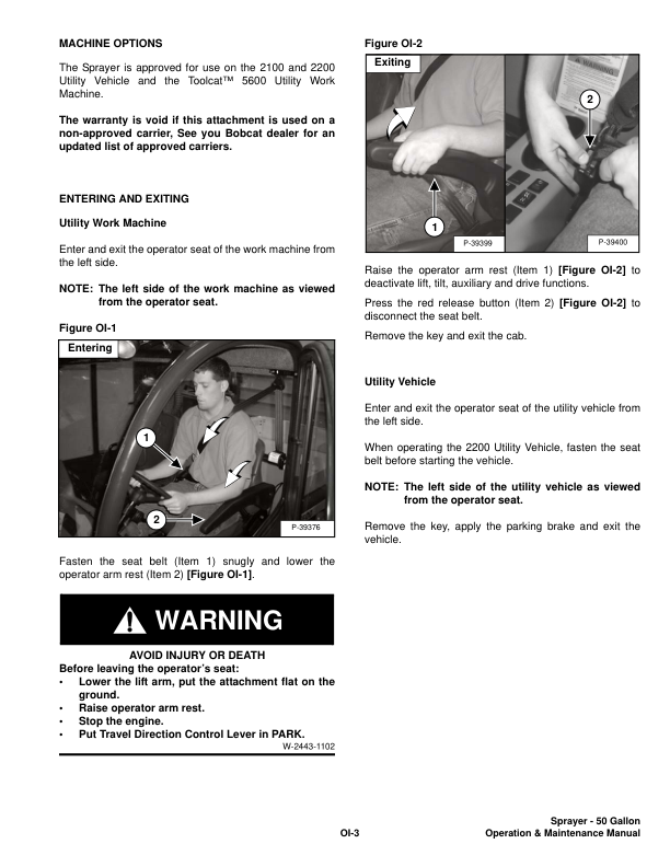 Bobcat Sprayer Attachment Operation and Maintenance Manual 0059 0059