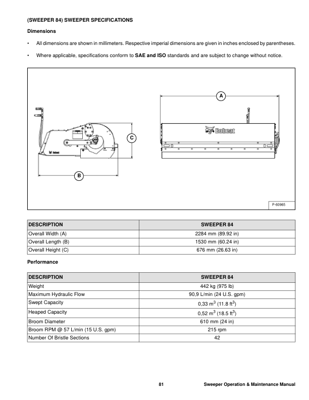 Bobcat Sweeper 84 Operation and Maintenance Manual