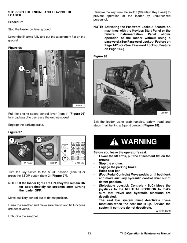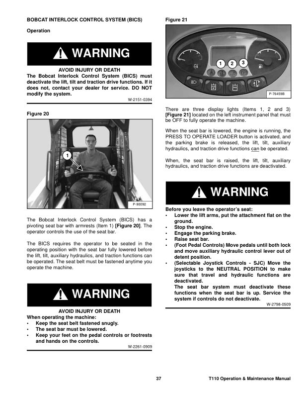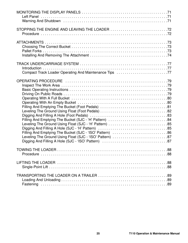 Bobcat T110 Compact Track Loader Operation and Maintenance Manual AE0H 2010