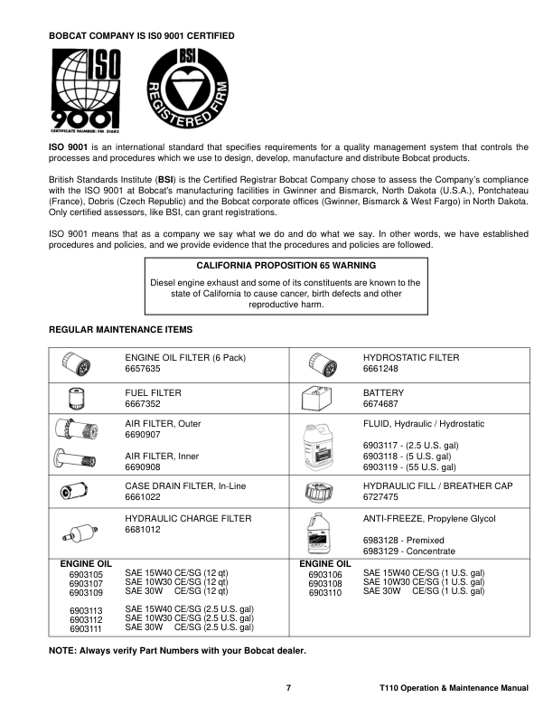 Bobcat T110 Compact Track Loader Operation and Maintenance Manual AE0H 2011