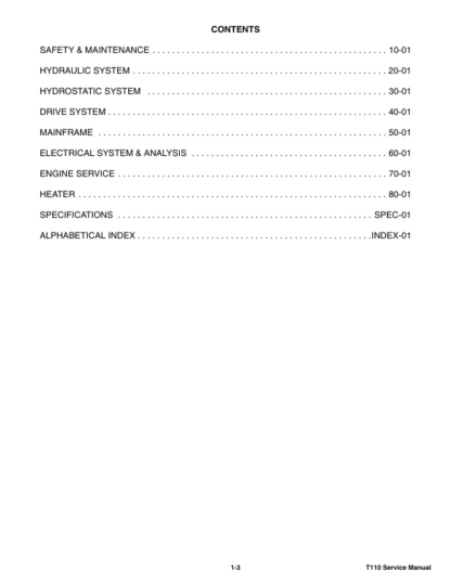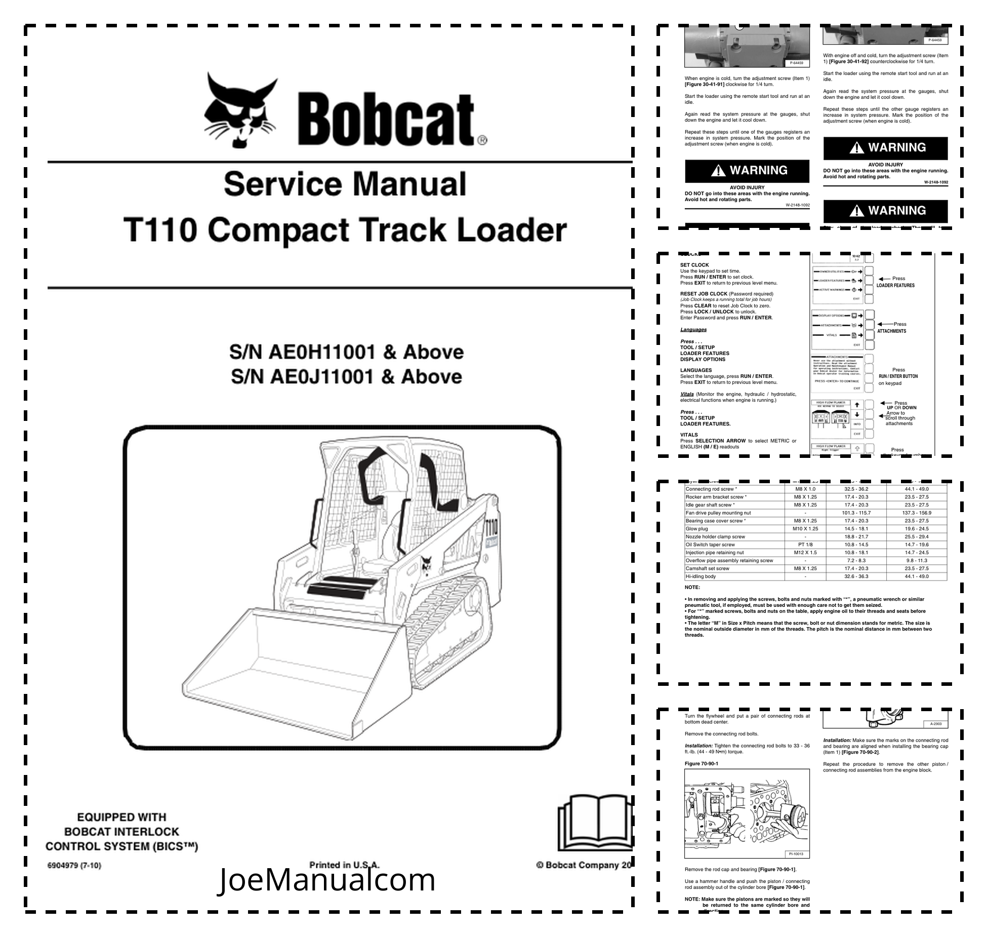Bobcat T110 Compact Track Loader Service Manual AE0H11001 AE0J11001
