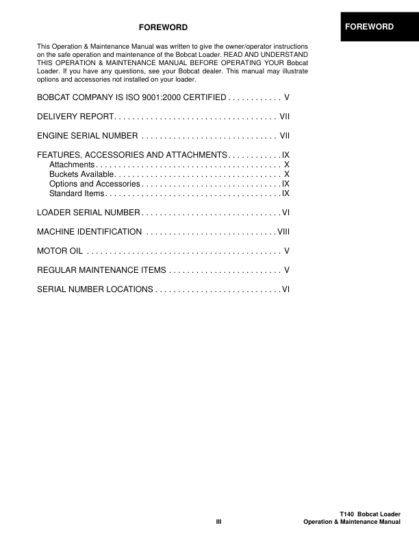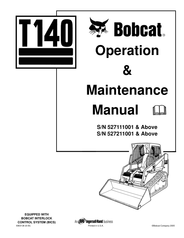 Bobcat T140 Compact Track Loader Operation and Maintenance Manual 5271 5272
