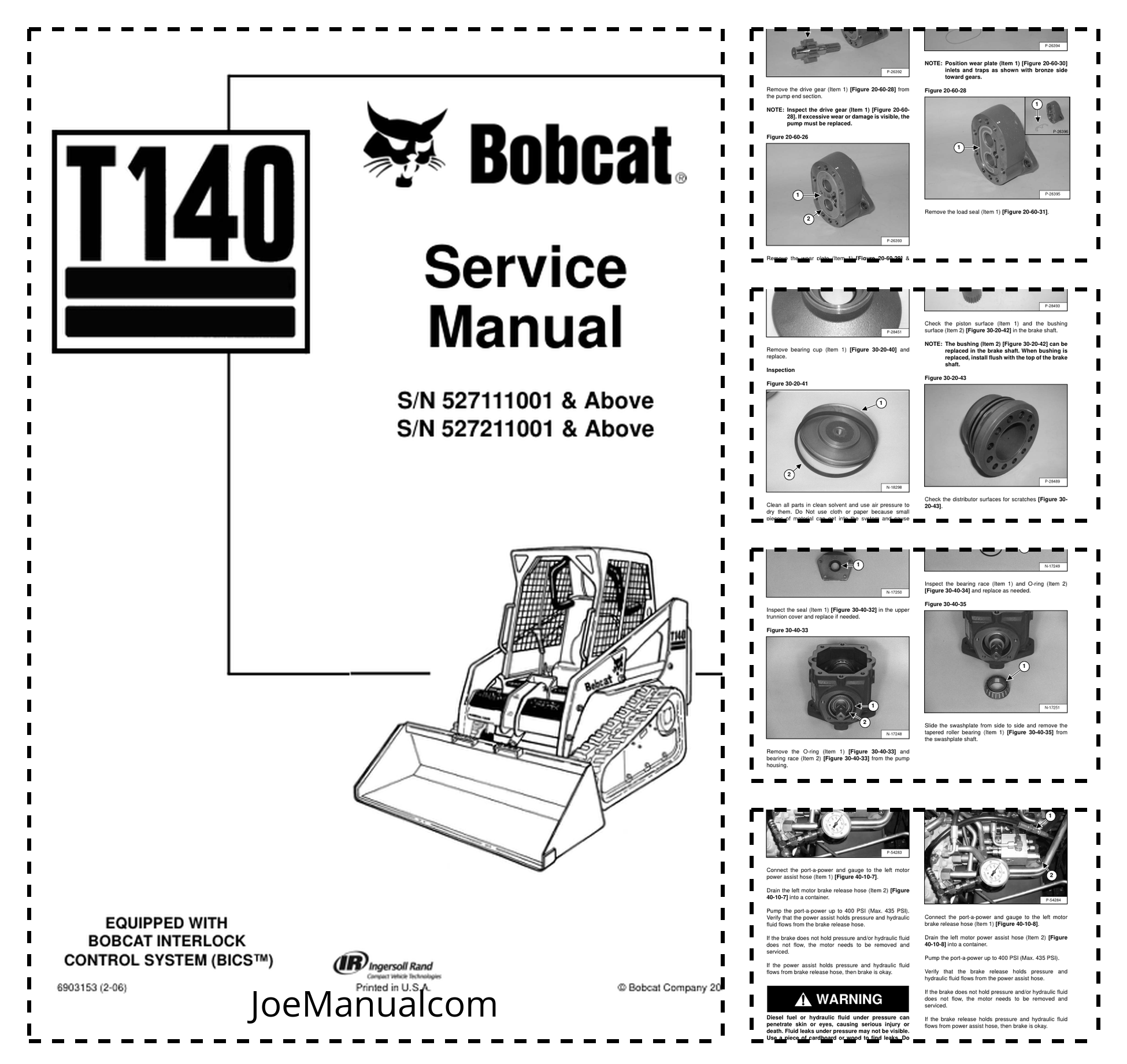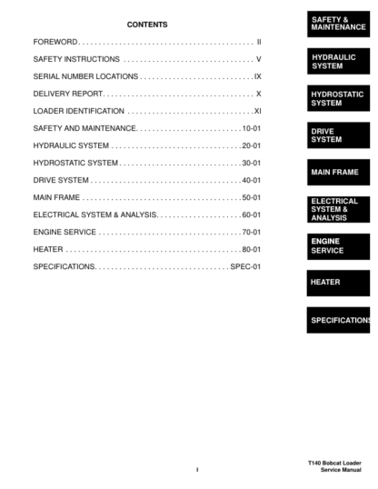 Bobcat T140 Compact Track Loader Service Manual 527111001 527211001