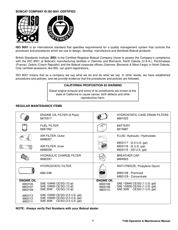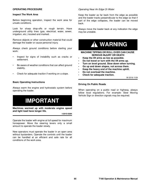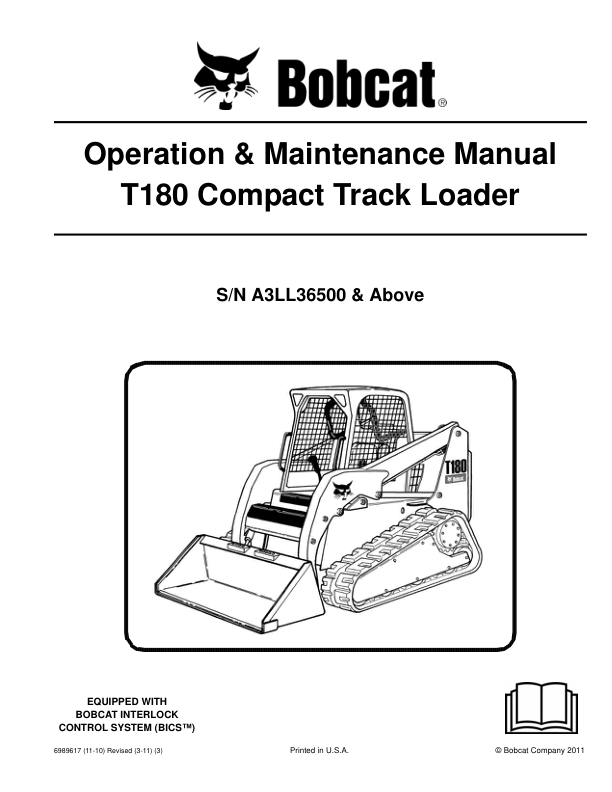 Bobcat T180 Compact Track Loader Operation and Maintenance Manual A3LL3 and Above